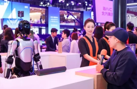 來到北汽集團(tuán)展臺,你會驚訝發(fā)現(xiàn),以往前臺接待的“小姐姐”不見了,取而代之的是一位略顯生疏,但未來感十足的機(jī)器人接待生,這正是智元機(jī)器人,已經(jīng)承擔(dān)起和觀眾互動的重任。具身機(jī)器人還只是一個小小的“開胃菜”,在北汽集團(tuán)展臺轉(zhuǎn)轉(zhuǎn),還有更多驚喜:展臺一角的滑板電動平臺互動體驗區(qū),正在上演“原地轉(zhuǎn)圈”和“橫行”的神奇表演;一輛有著L4級智駕水平的Robotaxi車型為觀眾展示未來出行的雛形;也有不少觀眾還在戴著Rokid AR眼鏡看展,或者在智能座艙體驗區(qū),感受沉浸式的智能擬人交互對話……如此種種,高“含智量”正是北汽集團(tuán)展臺給人的第一印象。