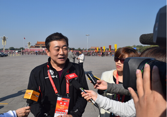 十月中旬的天安門(mén)廣場(chǎng)依舊熱鬧非凡,其中既有國(guó)慶余韻的影響,也有“2014環(huán)北京職業(yè)公路自行車(chē)賽”第五賽段在此鳴槍發(fā)車(chē)的原因。
