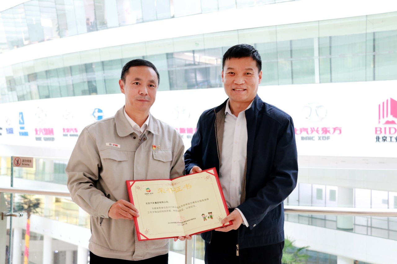12月24日,北京世園局總經(jīng)濟師林晉文一行到訪北汽集團,向北汽集團頒發(fā)“2019年中國北京世界園藝博覽會服務保障特別貢獻獎”,并針對北汽集團對世園會服務保障工作的高度重視、傾情服務及人力物力的付出表示感謝。北汽集團黨委常委、副總經(jīng)理蔣自力代表集團領取了獎杯和獎狀。
