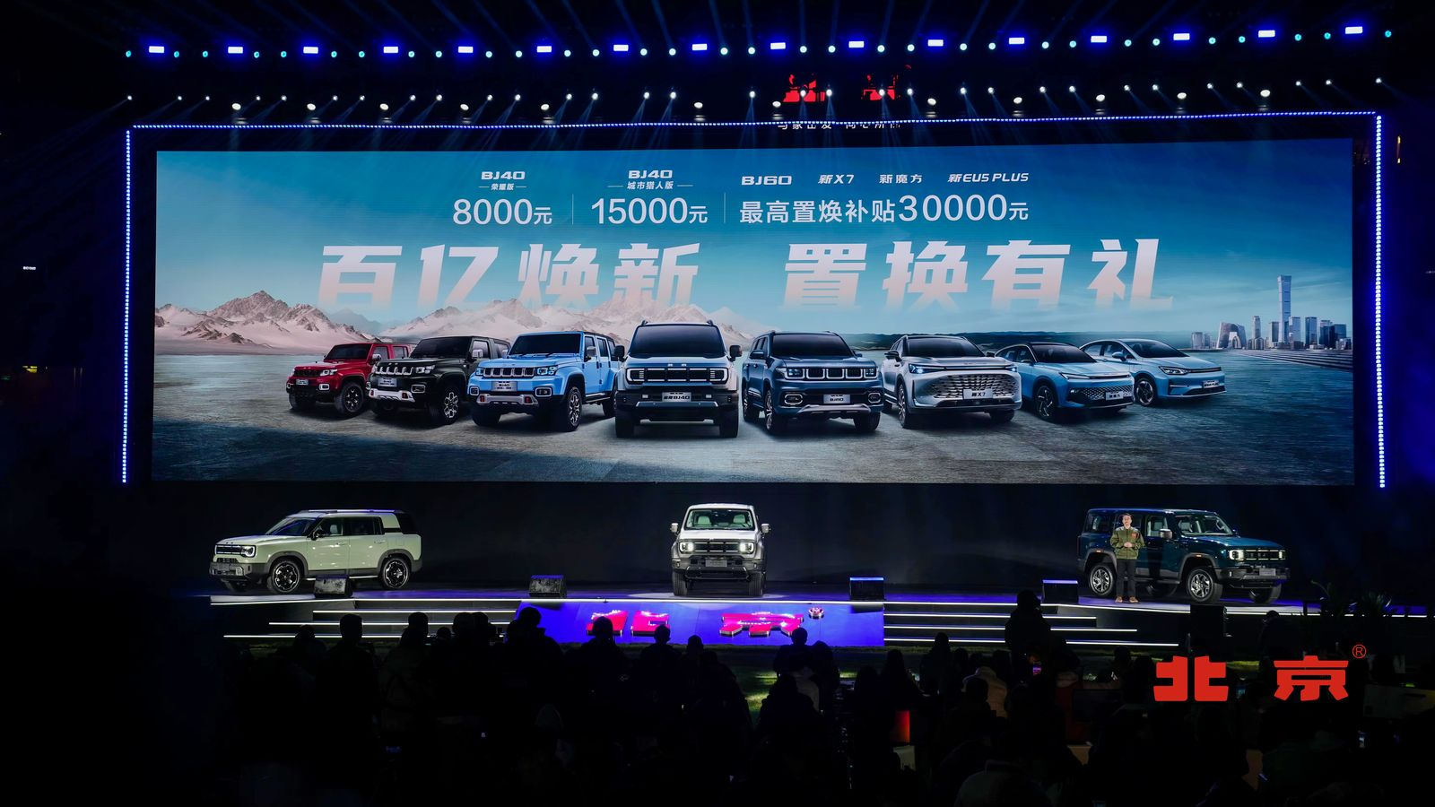 發(fā)布會(huì)最后,北京汽車(chē)還用豐厚的福利政策,為用戶帶來(lái)了兩大彩蛋,讓北京用戶的粉絲們驚喜連連。彩蛋之一,是3月18日正式上市的BJ40榮耀版,以13.98萬(wàn)起的售價(jià)和更高的配置,打造 “專(zhuān)業(yè)越野性比價(jià)第一車(chē)”,讓越野更加親民。 彩蛋之二,是“百億煥新,置換有禮”。北京汽車(chē)聯(lián)合全國(guó)經(jīng)銷(xiāo)商,拿出“百億資金”,推出大額度置換福利,BJ40榮耀版置換補(bǔ)貼8千元;全新BJ40城市獵人版置換補(bǔ)貼1.5萬(wàn)元;BJ60、新X7、新魔方、新EU5PLUS全部可享至高3萬(wàn)元置換補(bǔ)貼。以真金白銀,回饋喜愛(ài)北京品牌的廣大用戶。