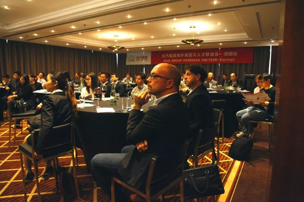 來自全德華人機電工程學會、中德汽車工業技術學會、慕尼黑中國學生學者聯合會、斯圖加特中國學者學生聯合會等多家單位代表,以及相關行業專家、高層次人才等出席聯誼會。100余名優秀人才均表達愿意加盟北汽,并與北汽集團招聘團隊進行了深入溝通和求職交流,現場氣氛十分熱烈。各單位現場確定了數十人的初步錄用意向,其中含汽車行業、通用航空等相關產業的精英人士。