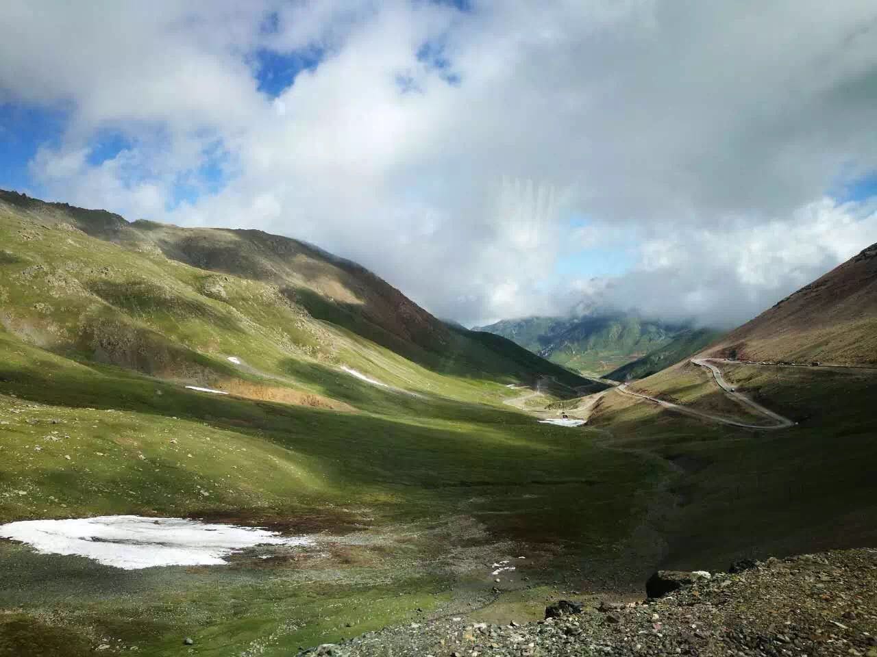 大冬樹山埡口是昆侖山和祁連山口的分界線,雖然是人間六月天,但山上寒風(fēng)凜冽,隨處可見殘雪。資料顯示,大冬樹山埡口的氧氣只有平原的60%,氣壓比平原低40%,水的沸點(diǎn)只有85度,紫外線強(qiáng)度比平原高一倍。