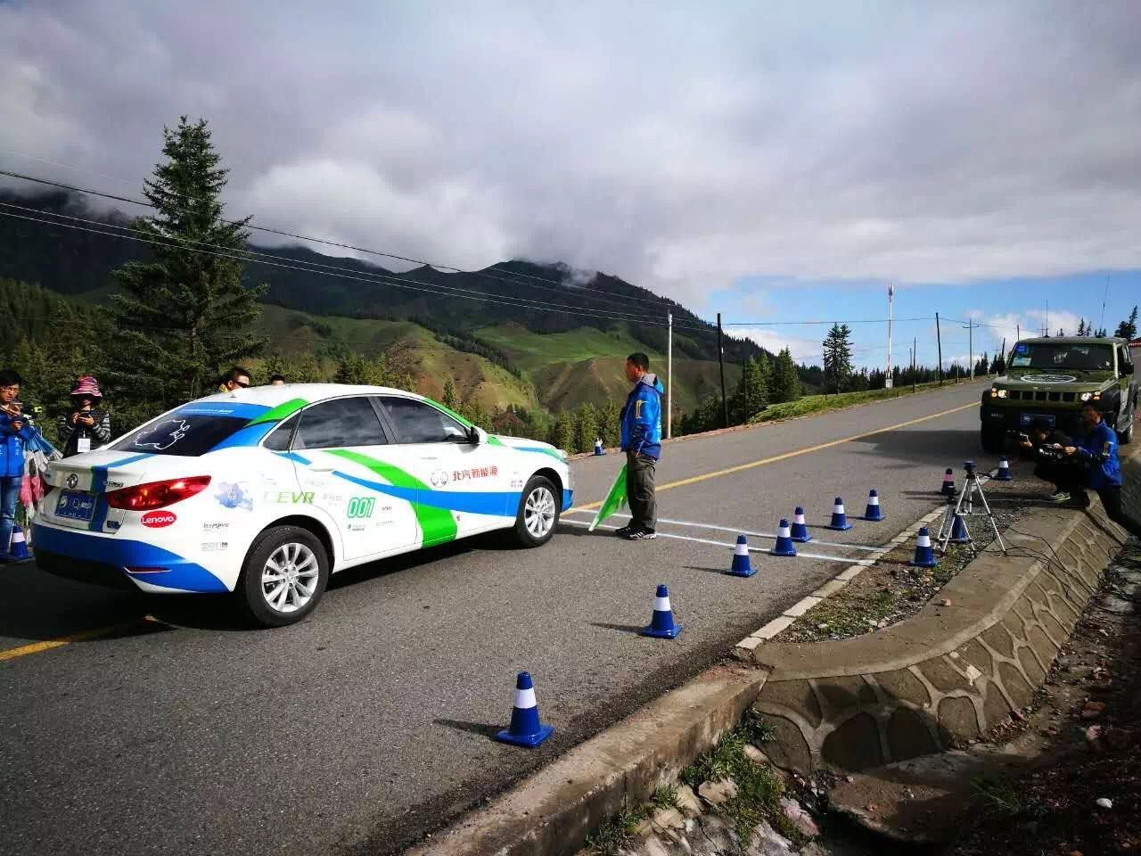 在冰溝的一段連續(xù)上坡的山路,車隊(duì)進(jìn)行了爬坡能力測(cè)試。測(cè)試路段由兩段陡坡和一個(gè)急轉(zhuǎn)彎組成,總長(zhǎng)約一公里。參賽車輛要在坡道起步,以最快速度到達(dá)終點(diǎn)。