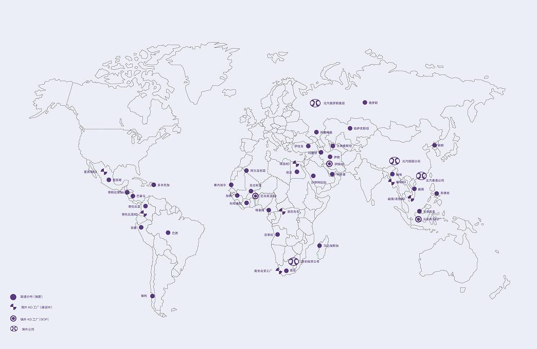 北汽集團(tuán)響應(yīng)國家“一帶一路”倡議,在海外不斷落子,努力實(shí)現(xiàn)“世界北汽”的戰(zhàn)略構(gòu)想。北汽集團(tuán)已在全球47個(gè)國家搭建銷售網(wǎng)絡(luò)154家、建設(shè)海外產(chǎn)業(yè)基地4家、境外公司7家、KD項(xiàng)目22個(gè)。“借助‘一帶一路’發(fā)展自主品牌,實(shí)現(xiàn)結(jié)構(gòu)調(diào)整和產(chǎn)業(yè)轉(zhuǎn)型升級(jí)、加快國際化進(jìn)程,將為北汽集團(tuán)走向世界提供前所未有的機(jī)遇與支撐。”